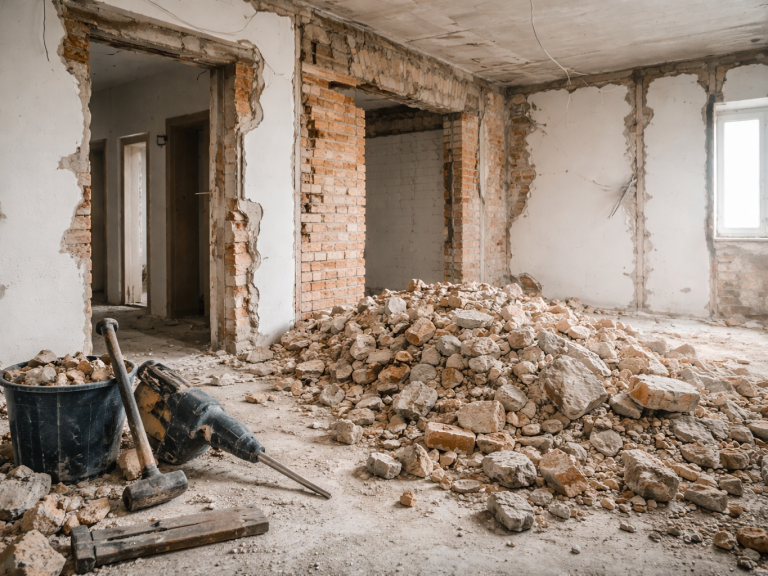 Rückbauarbeiten wie das Entfernen nicht tragender Wände, Bodenbeläge, Decken und komplette Entkernungen – sauber, kontrolliert und fachgerecht.